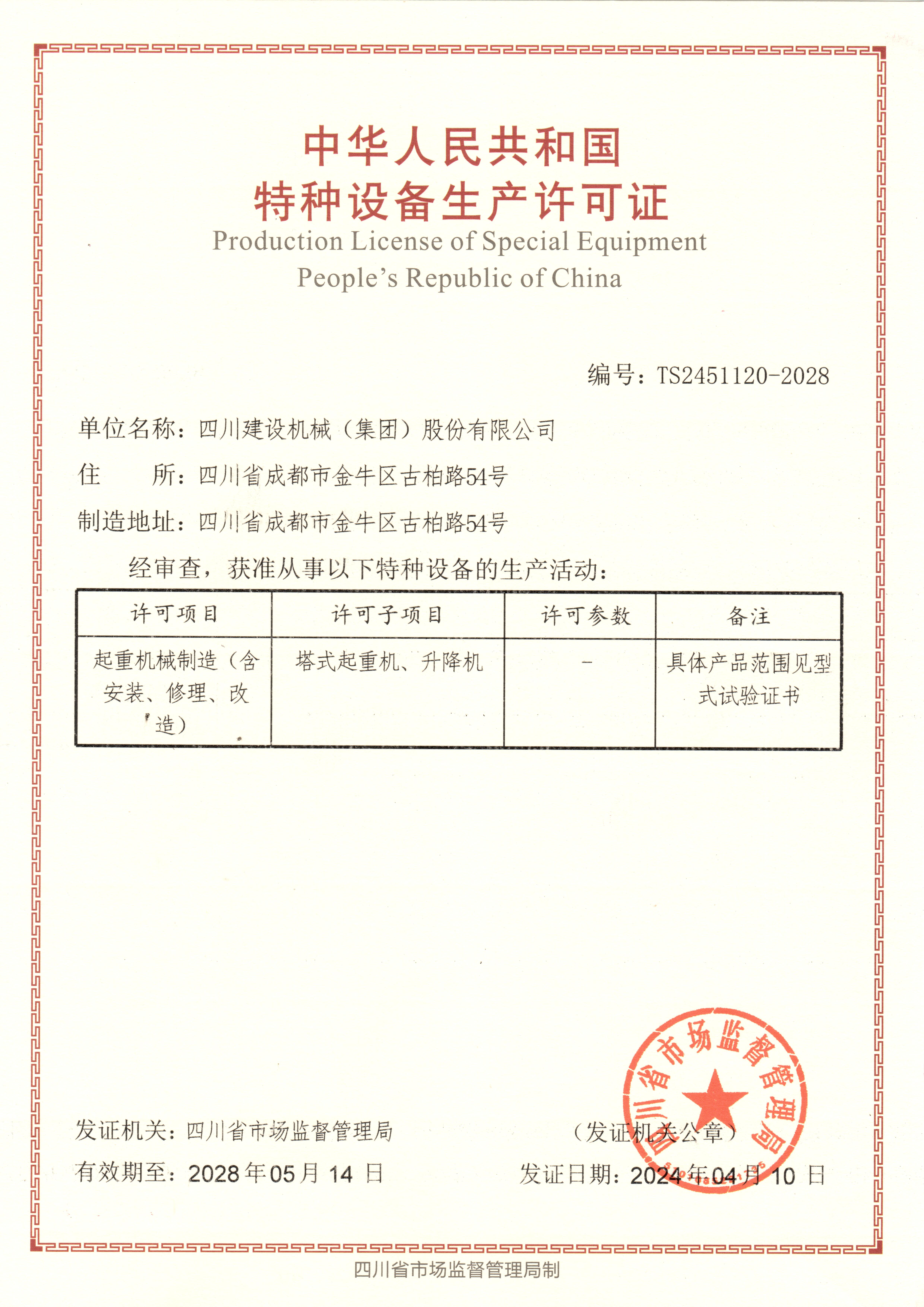 四川建設機械(集團)股份有限公司位于四川省成都市,是中國從事建設機械生產和銷售的大型企業,國內同行業率先通過ISO9001國際質量體系認證,被認定為全國企事業知識產權試點單位、國家質量效益型先進企業、國家高新技術企業、國家一級計量和理化認證企業、國家兵工動員企業及外貿自營企業,連續十一次被中國質協評為“全國用戶滿意企業”。?