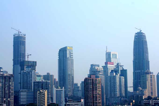 項目地點:重慶左邊高的是重慶賓館的C7022,封頂高度為290米,右邊高的是環球金融中心FO/23C,高度是260米,均為內爬型式